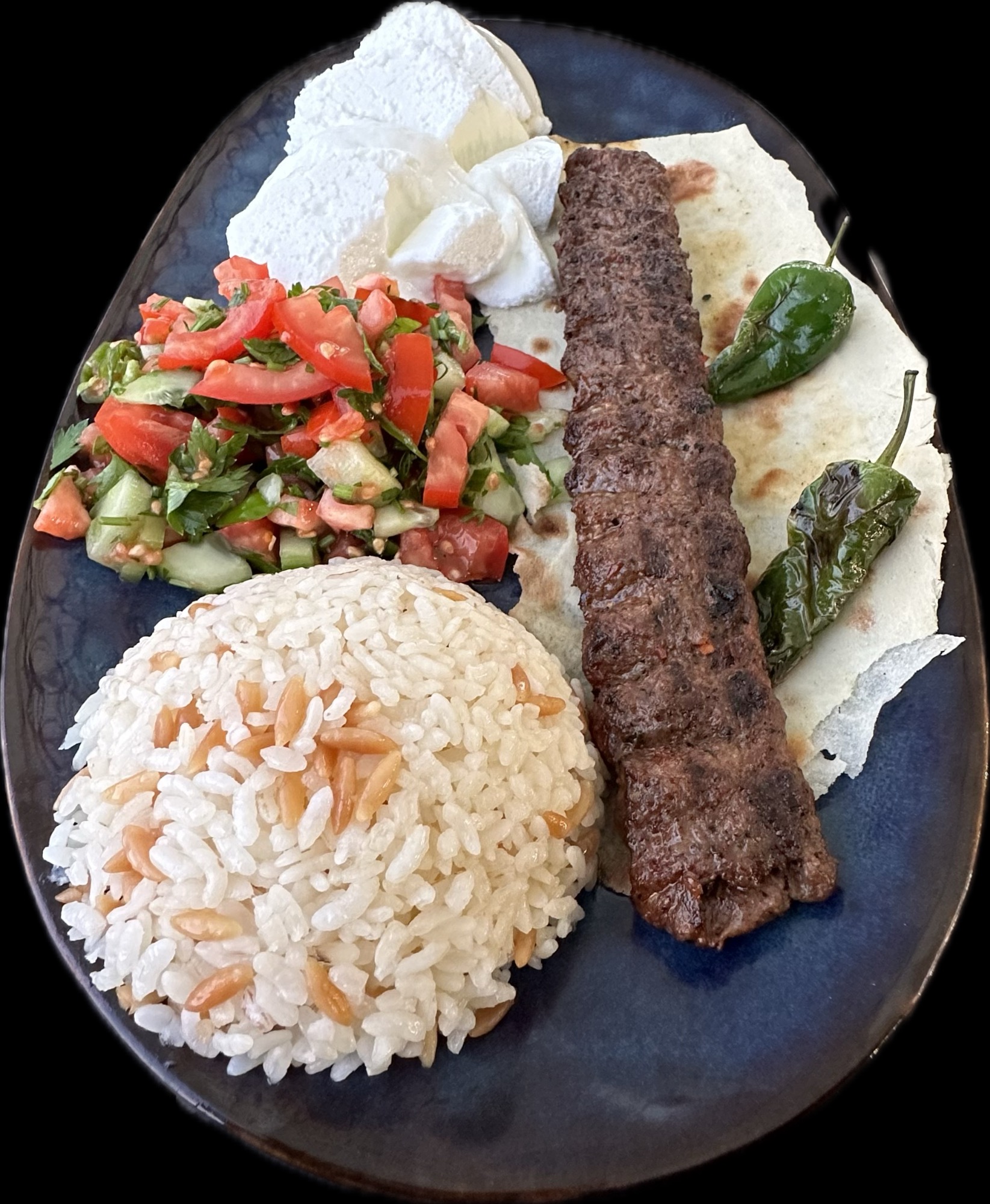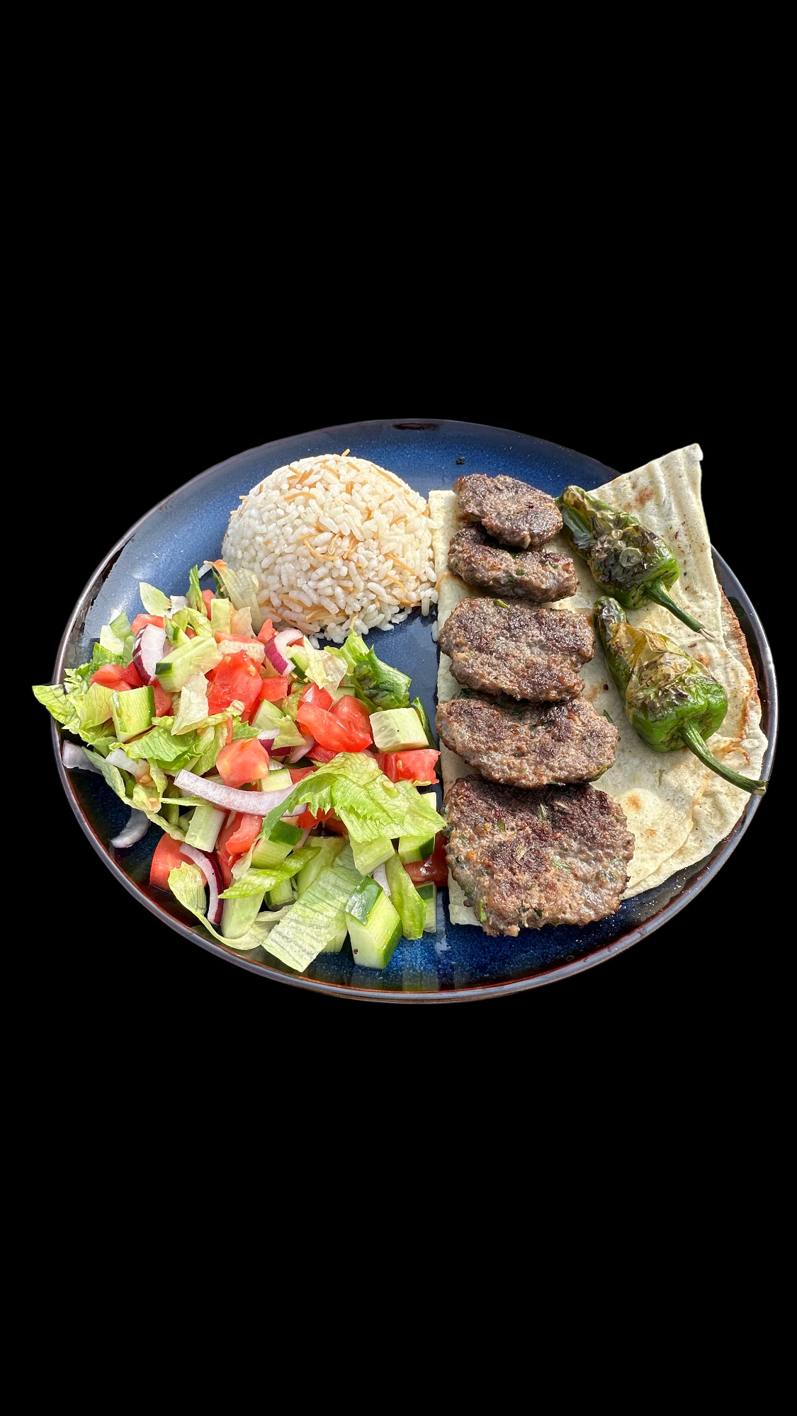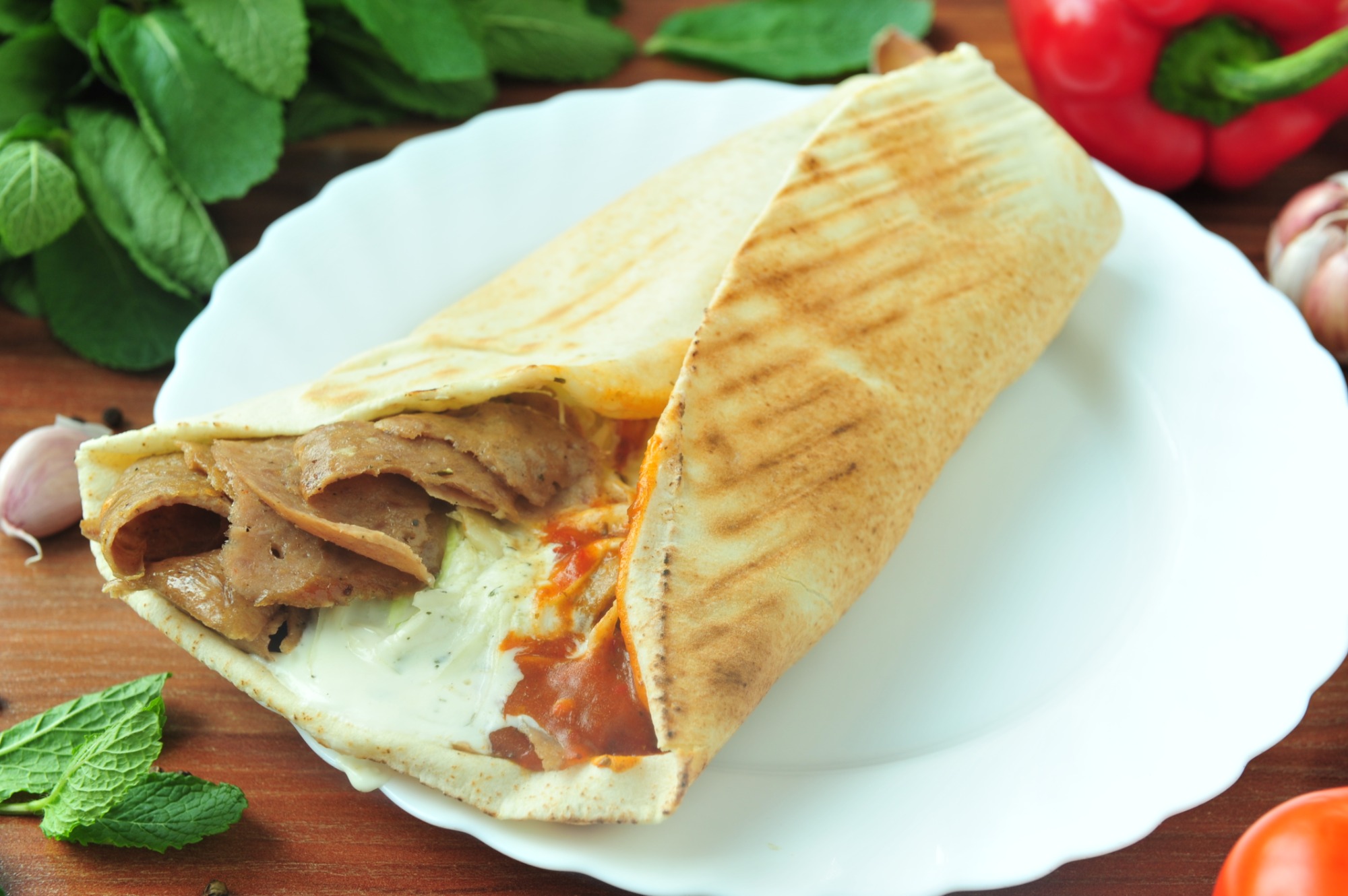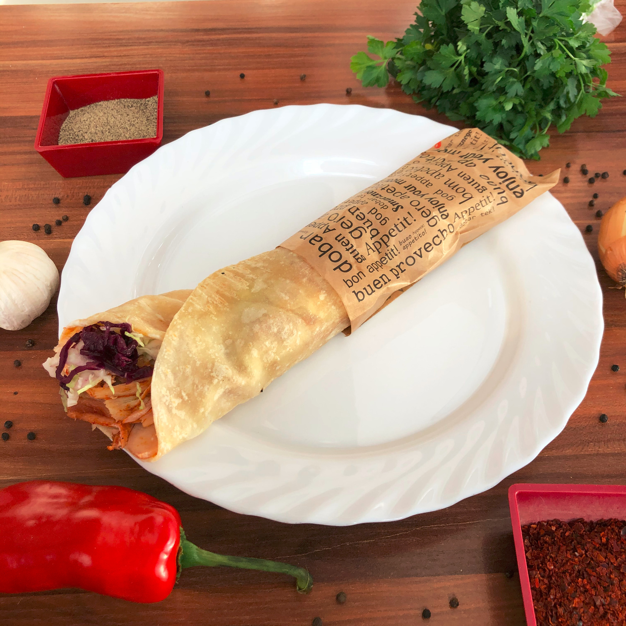 (220g ostre mielone mięso wołowe na szpadzie, surówka, sałata lodowa, pomidor, ogórek, cebula, sosy)- owinięte w cieście tureckim wypiekanymi przez nas jako jedynych w Radomiu