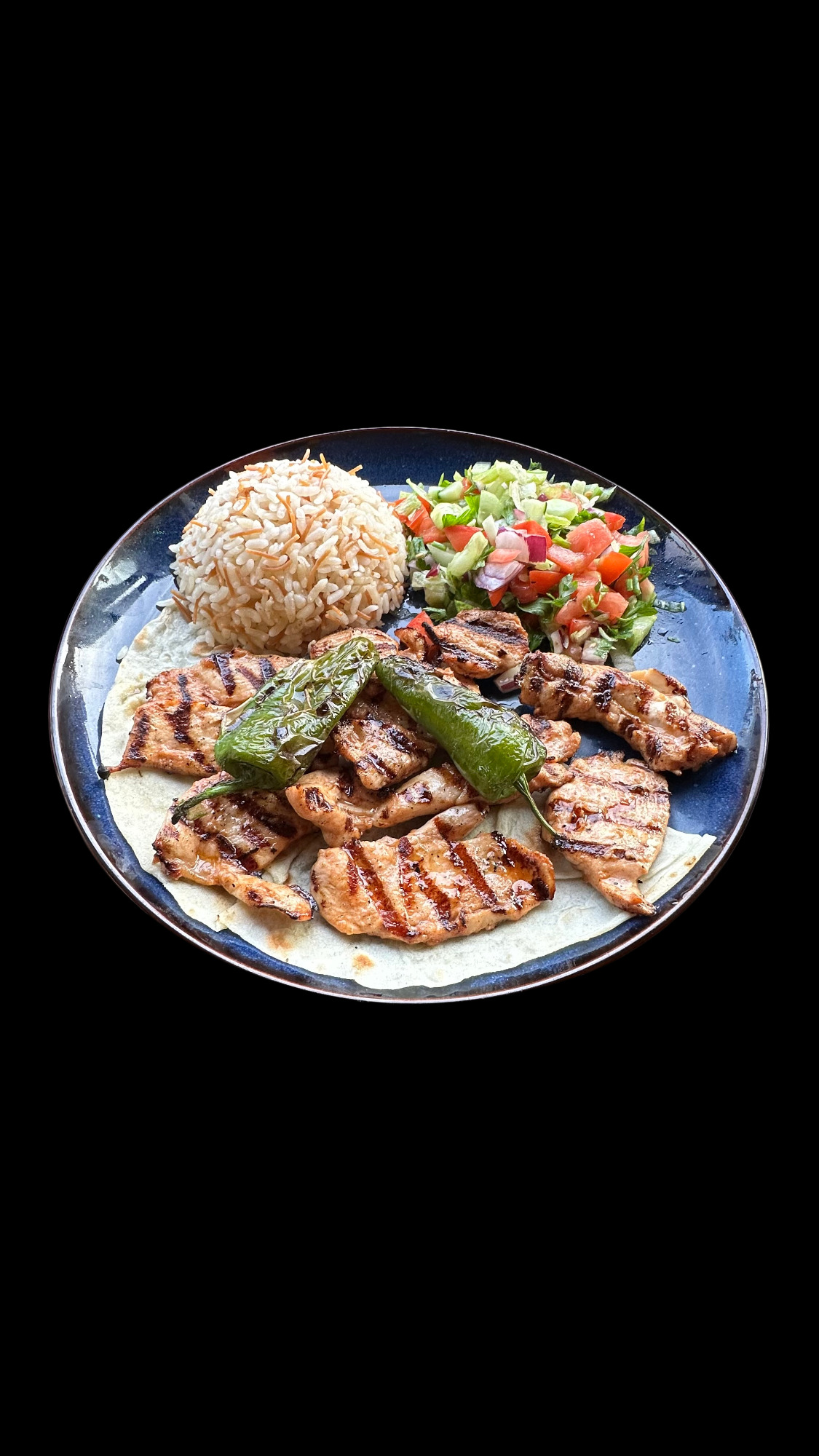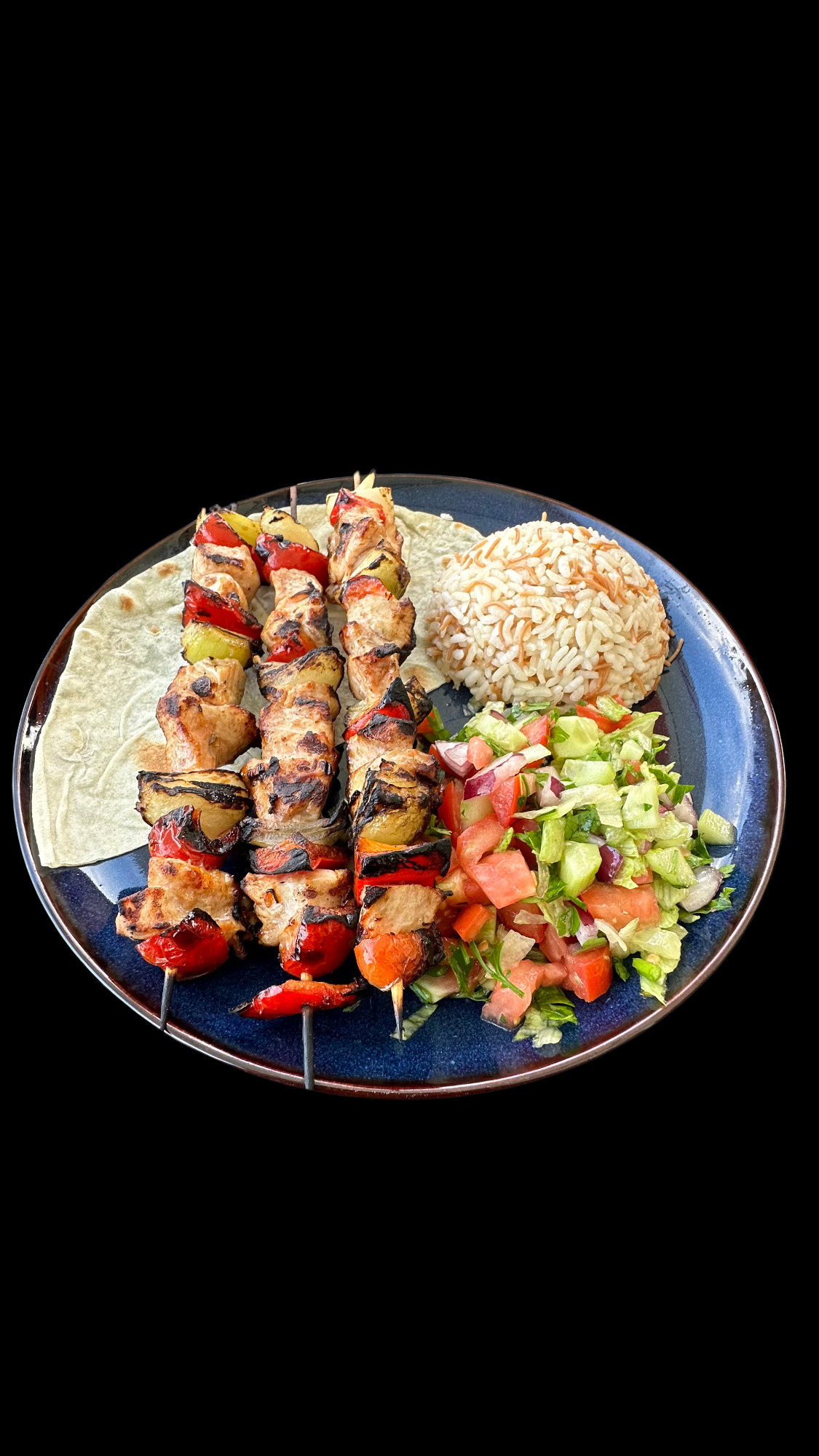 80 g mięso zestaw surówek, frytki/ryż/bulgur i sosy